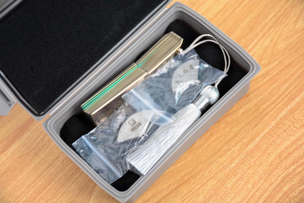 After opening, you can see the Figo all-titanium mini painted fan, as well as two tightness adjustment tools.