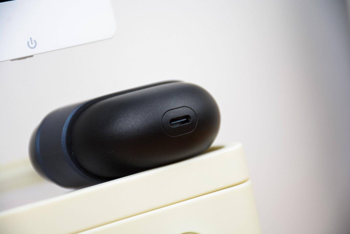 The Type-C charging port is designed at the bottom, and you can also see that the fuselage is made of black matte material, which can effectively prevent slipping when used.