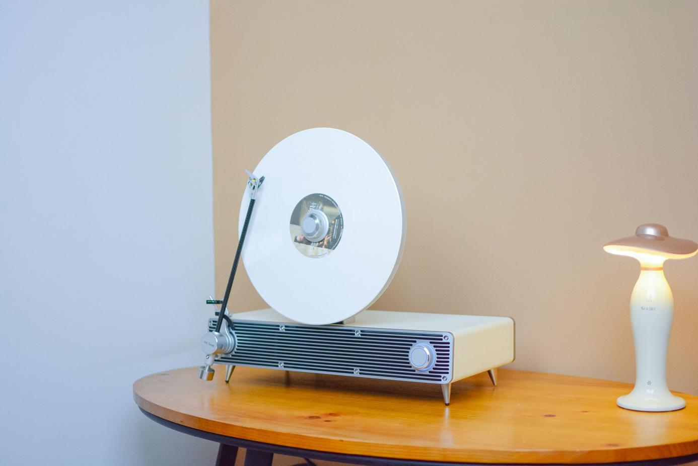 Let's take a look first, this is the scene of playing a record, Cool Geek vinyl record player has a variety of colors to choose from, among which my ivory white with white vinyl record, in addition to a strong artistic atmosphere, also has a sense of fashion.