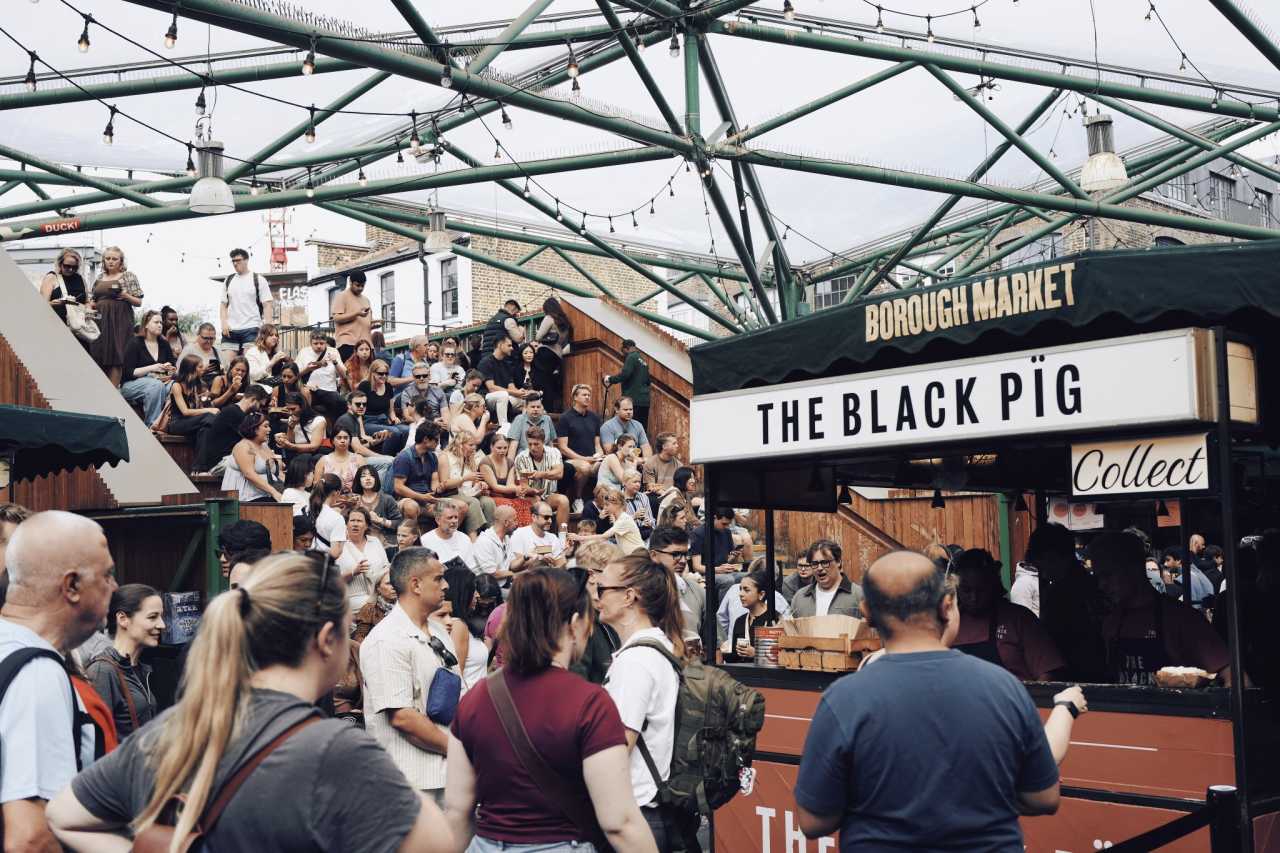 Borough MarketWe tried a few internet-famous stalls. Highly recommend The Black Pig — the UK’s version of “meat-filled bun”: chewy bread stuffed with juicy braised pork, a bit of tangy-spicy crisp garnish, and plenty of grated cheese. Tastes great, and the slightly sour-spicy flavor instantly awakens appetite, very friendly to Asian stomachs. Portions are sizable and cost performance is high.