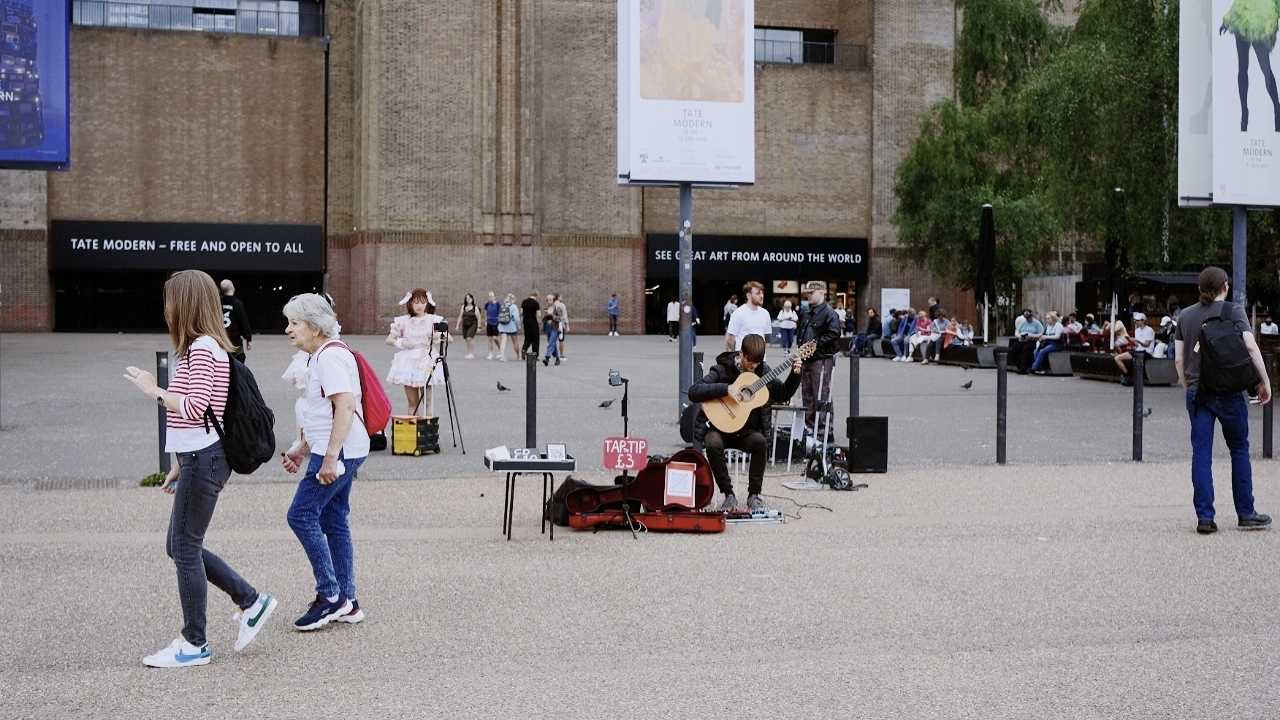 Millennium BridgeStreet performances in front of the museum vary by time—art vibes maxed.