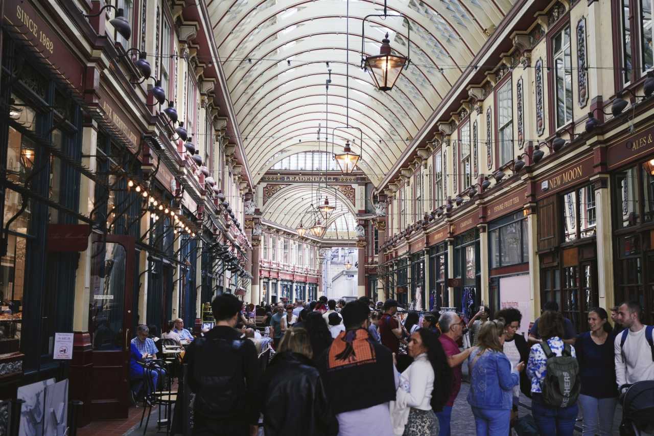 From Borough Market, walk south across London Bridge for about 15 minutes to reach Leadenhall Market—one of London’s oldest markets, with history dating back to the 14th century, located at the site of Roman-era London’s center, and a filming location for Harry Potter’s Diagon Alley.