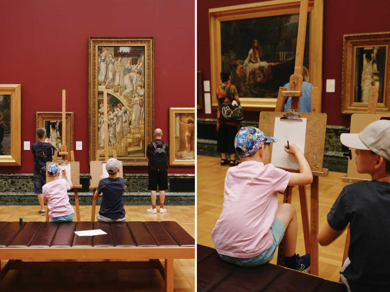 Tate BritainAlmost every hall provides seating so you can sit and appreciate paintings. Some rooms offer paper, pens, and boards for tracing and capturing inspiration. Many kids were absorbed, “creating” earnestly.