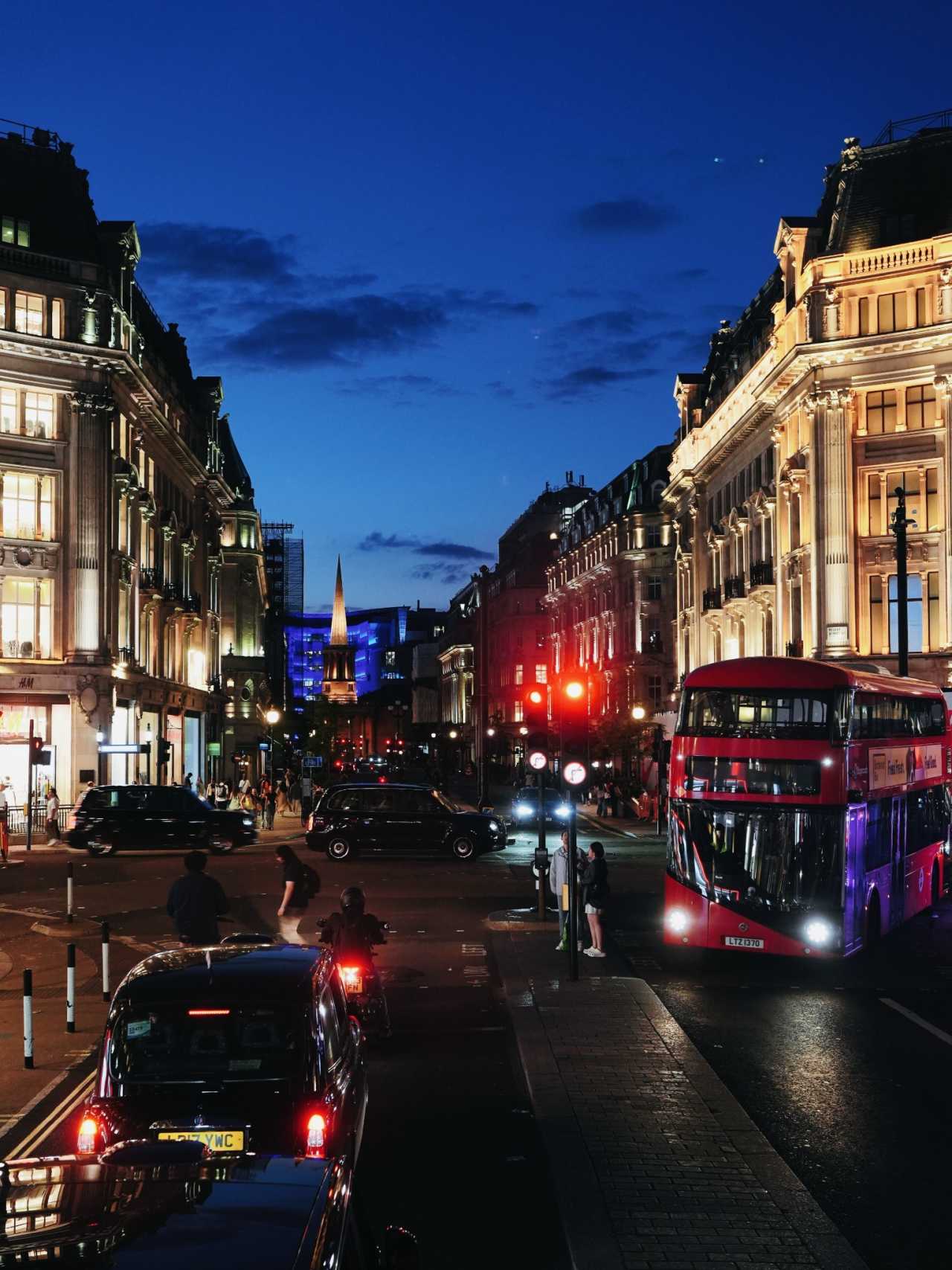 Piccadilly, ***, and Mayfair—prosperous commercial streets worth strolling; night scenes are charming.