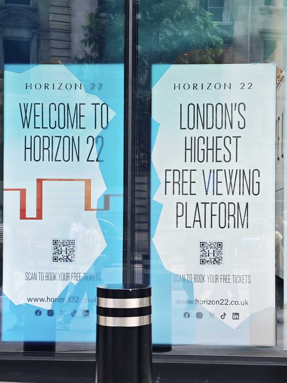 Horizon22 is about a 5-minute walk from Leadenhall Market and offers free elevated views. I had been watching reservations—they were always full. Each day they release some walk-in slots that require same-day booking. Luck was good; we booked walk-in tickets on a whim. The elevator shot up to the 85th floor; when the city unfolded before our eyes, we truly felt the trip was worth it! Day one’s “peak” started with a god’s-eye view over London.