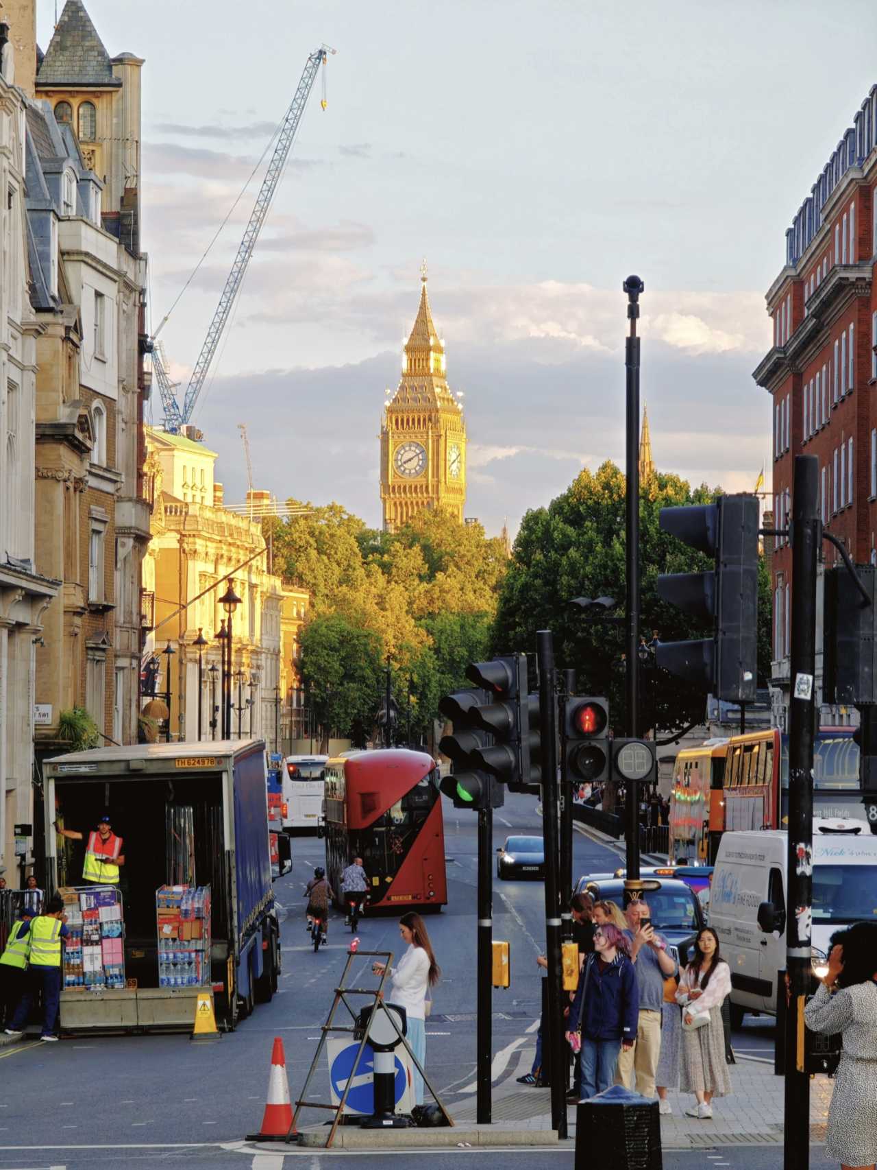 We visited must-see Big Ben and the London Eye twice. Once before sunset—the sun was strong—Big Ben was backlit and dazzling by the street, while the London Eye was at its best with blue sky and sunlight.