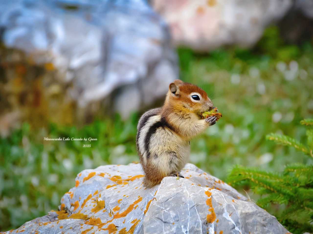In the national park, Chipmunk is one of the most common and endearing small animals. They are petite in size, with several distinct light and dark stripes on their backs, agile in movement, always bouncing around the trails or between stone crevices foraging. When by the lake or in picnic areas, you often see them curiously poking their heads out, but when viewing these little sprites in Banff, it's best to just admire them from a distance and not feed them, allowing them to maintain their wild lifestyle.