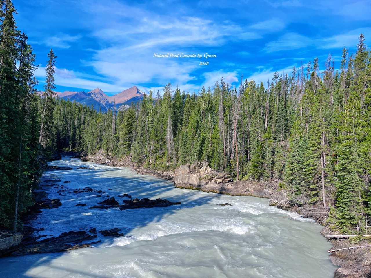 Natural Bridge is a "bridge" naturally formed by hard rock, spanning the turbulent Kicking Horse River. This was originally a waterfall. Over thousands of years, the river water continuously eroded the rock, gradually hollowing out the softer parts, eventually forming today's "bridge" - a naturally formed stone arch, with water flowing underneath, like a work carefully carved by nature with a sculpting knife.