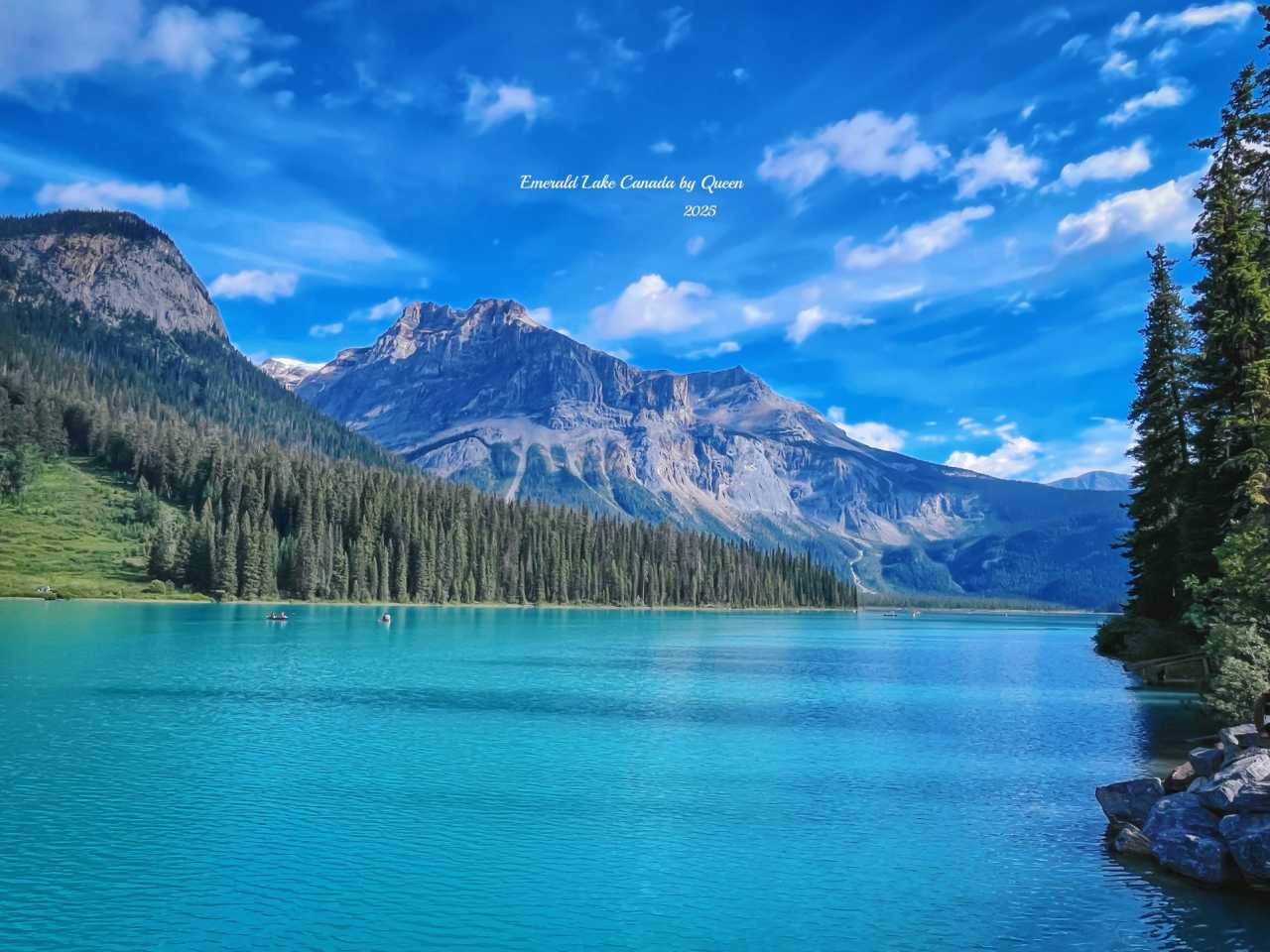 Walking along the lakeside, every few steps the lake color undergoes subtle changes, from lake green to emerald, then gradually showing a milky blue luster. Someone paddles a canoe slowly across the lake surface, the boat body cuts through the water waves, yet quietly closes again, as if no one has ever come.
