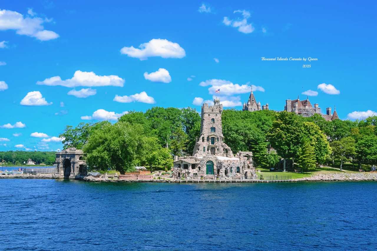 Sailing on the blue water under the sun, boats shuttle between islands surrounded by green trees. The broadcast continues to remind everyone to pay attention to a majestic European-style castle ahead: "This is Boldt Castle, a landmark on the U.S. side." Behind this castle lies a heartbreaking story - George C. Boldt was the founder of New York's Waldorf Astoria Hotel. He built this island castle for his beloved wife Louise in 1900, wanting to give it to her as a Valentine's Day gift. But just as it was about to be completed, Louise suddenly passed away, and the heartbroken Boldt immediately stopped the project. The castle was abandoned for many years thereafter.