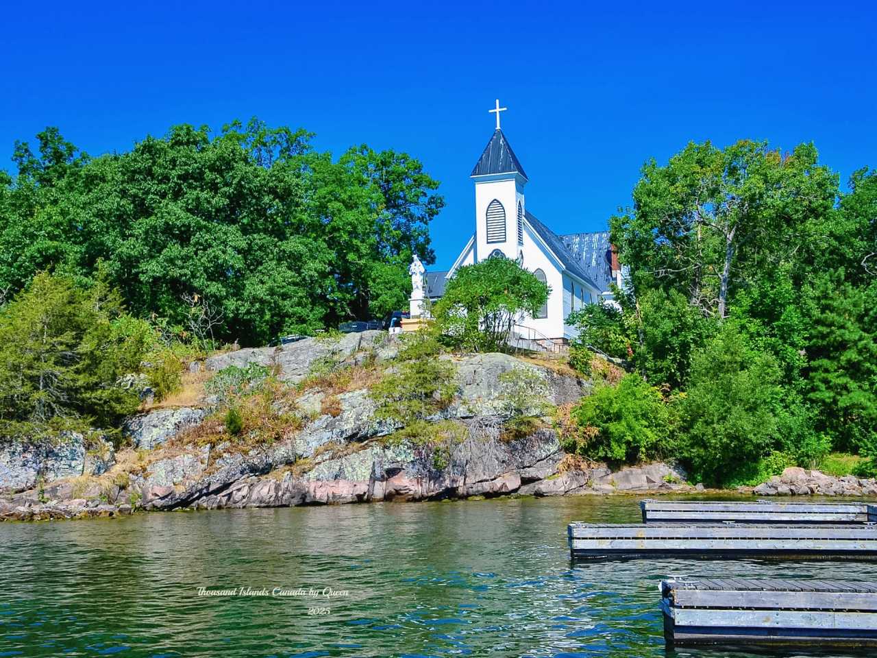 There are no busy blocks here, nor commercial hustle and bustle, only a few old wooden houses, a small dock, a church, and an ice cream shop, surrounded by the St. Lawrence River, quietly guarding the breath of water and islands.