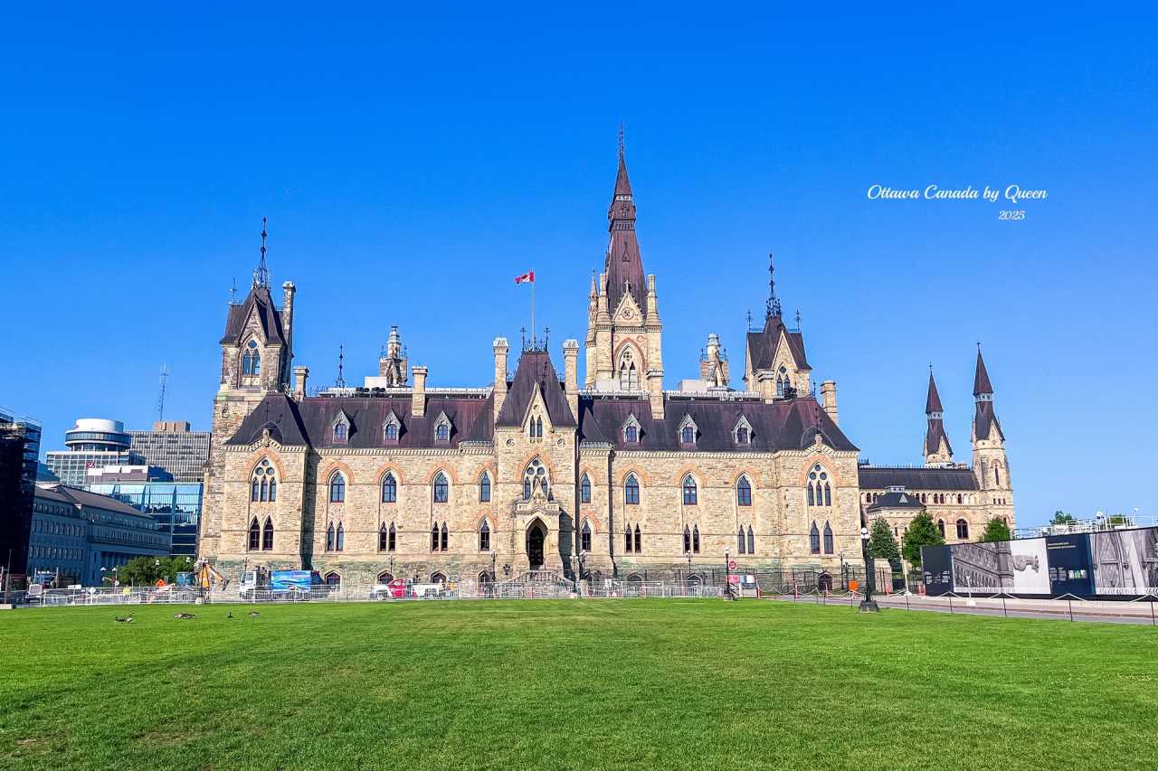 Parliament Hill is the core of the entire city. The building complex itself is like a castle woven from stone, with Gothic Revival-style towers, spires and carved details appearing particularly solemn under the blue sky.