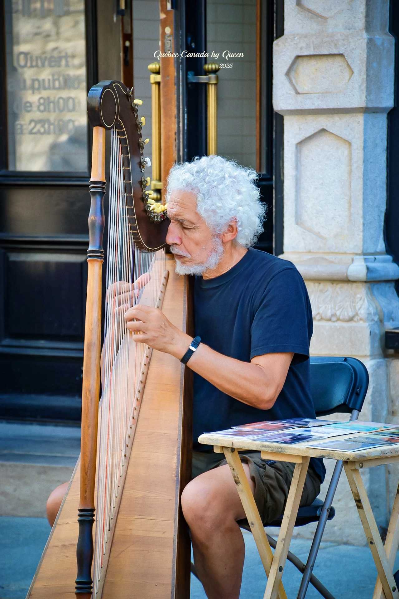 Besides the "killer brother," I also met a white-haired old man playing the harp in the square, a very famous street performer in Quebec's old town. He has a gentle temperament, snow-white hair, and neat clothes, with a quiet and transcendent presence - what's more special is that he actually appeared in the Korean drama "Goblin: The Lonely and Great God," becoming the "Quebec impression" in the hearts of many movie fans.