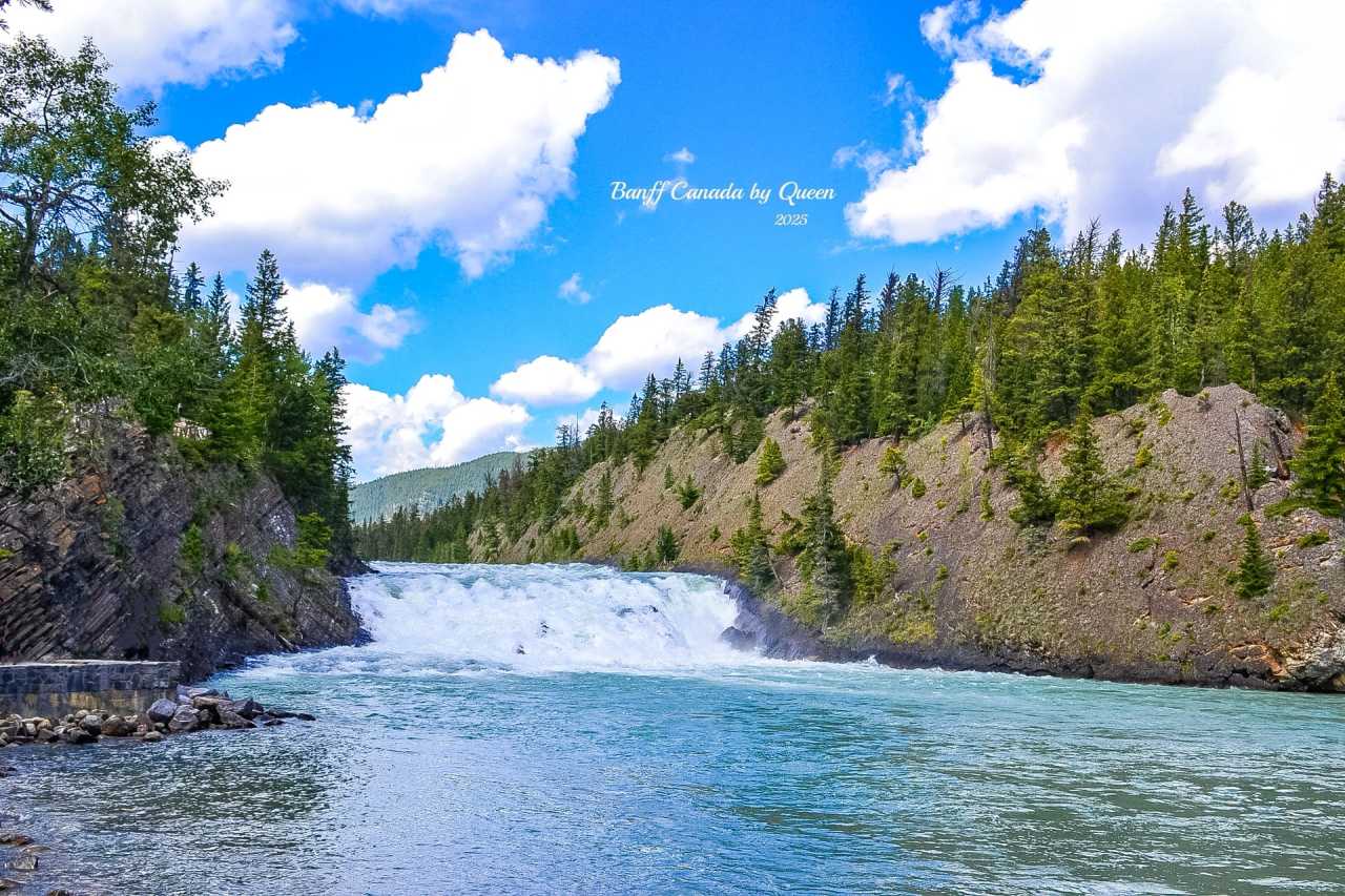 Walking slowly from the town center along the path leading to the river, underfoot is a gravel path, in the ears are birdsong and the sound of flowing water. Bow Falls is not far ahead. She's not the kind of waterfall that hangs high, but lies low, rolling forward between the rocks, with white water spray and blue river water weaving a primitive sense of power.