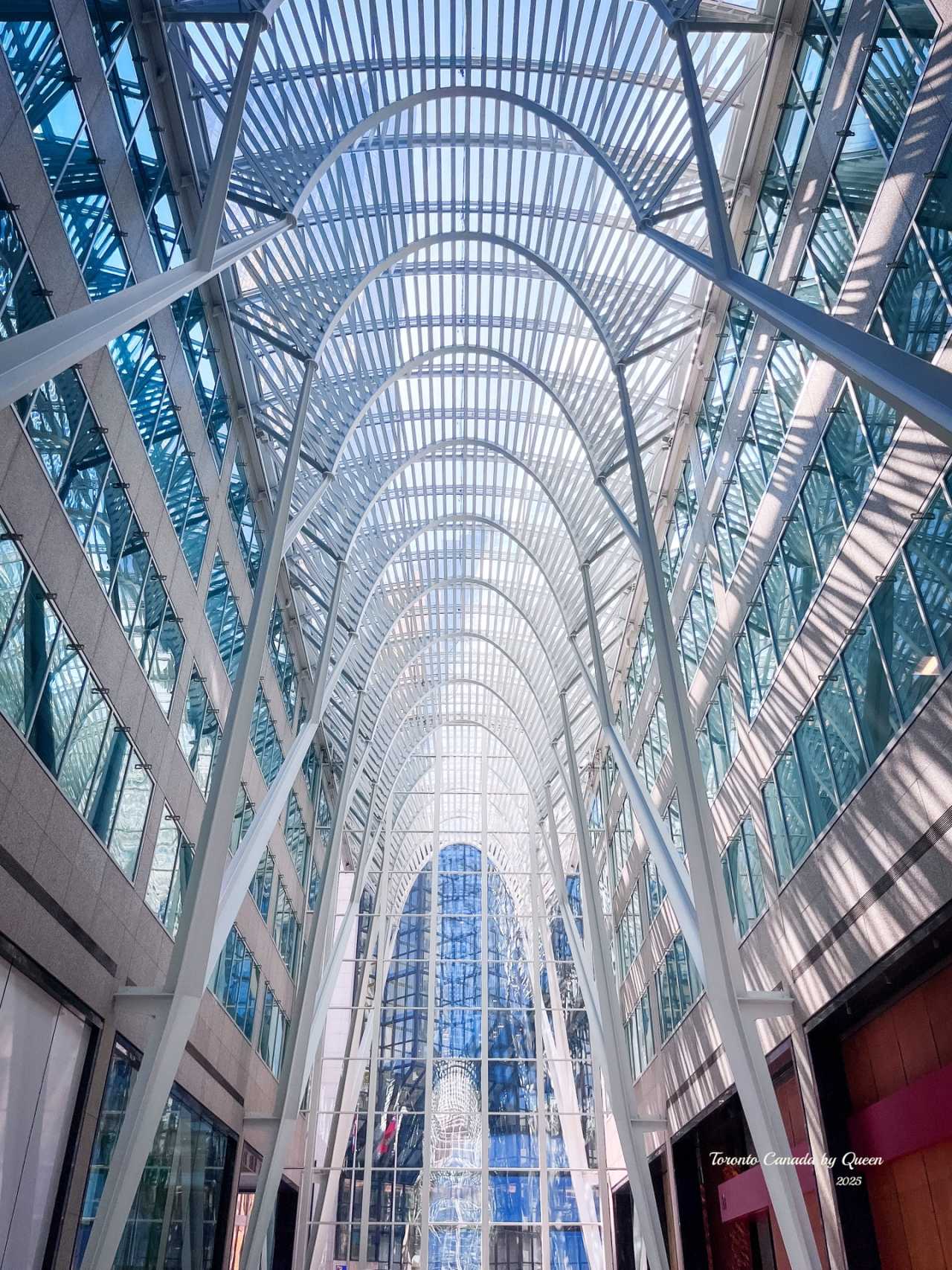 Walking into the city center, I entered a very special building: Brookfield Place (Brookfield Square). It looks like an ordinary office building from the outside, but inside it hides a poetic space - Allen Lambert Galleria. The arched glass dome stands tall, with sunlight pouring down from between countless metal ribs, as if standing in a church where modernity and the future meet. Although the space is large, it is extremely quiet. Standing in the heart of this city woven with steel and glass, for the first time I felt that Toronto is not "boring," she just hides her beauty very deeply, waiting for you to discover it yourself.